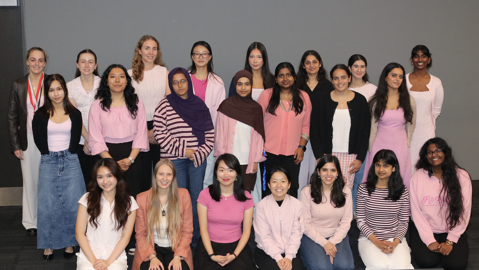 Back row: Emily Parker (Secretary), Tayla Manning (Speech Language Therapy SL), Annika Boehm (Audiology SL), Swetlana Khoo (Co-director of mentoring), Andrea Streat (Health Science SL), Raunak Postoo (Health Research SL), Melissa Dodunski (Nursing SL), Kiyara Kapilaratne (Medical Imaging SL). Middle row: Arabelle Garzon (Psychology SL), Selina Karmacharya (Treasurer), Athina Hossain (Optometry SL), Zunaira Burney (Pharamcology SL), Roshni Sashi Kumar (Biomedical Science SL), Shana Singh-Anderson (Medicine SL), Yesha Vaidya (Co-director of Equity). Bottom row: Xin Xuan Lee (Deputy Director), Cassidy Puttergill (Auckland Branch Director), Elaine Huang (Co-director of Marketing), Tamaryn Lee (Pharamcy SL), Durrane Zaidi (Co-director of Mentoring), Nuthara Munuwelge (Co-director of Marketing), Yuvani Gampalage (National Director). Absent: Nicole Yoon (Alumni Representative), Saskia Simmers (Director of Events), Ananya Nadkarni (Co-director of Equity).